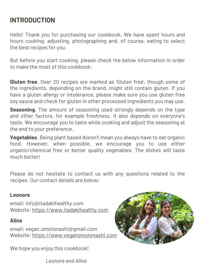 Vegan nutritioncoach itadakihealthy and Vegan restaurant consultant omotenashi have created 24 recipes especially for you!